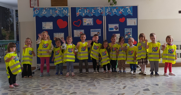 Dzisiaj dziewczynki i chłopcy z grupy 3-4 latków obchodzili swoje święto – Dzień Chłopaka i Dziewczyny. Z  okazji Dnia Chłopaka i Dziewczyny maluchy złożyły sobie wzajemnie życzenia. Niespodzianką dla wszystkich był okolicznościowy upominek przygotowany przez rodziców przedszkolaków – kamizelki odblaskowe i słodki lizaczek. Przedszkolaki ubrane w nowe kamizelki z dumą prezentowały się na terenie naszej szkoły i podczas spaceru po naszej miejscowości.