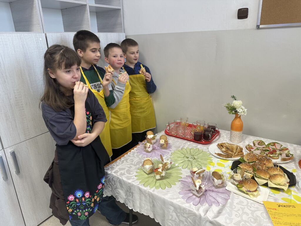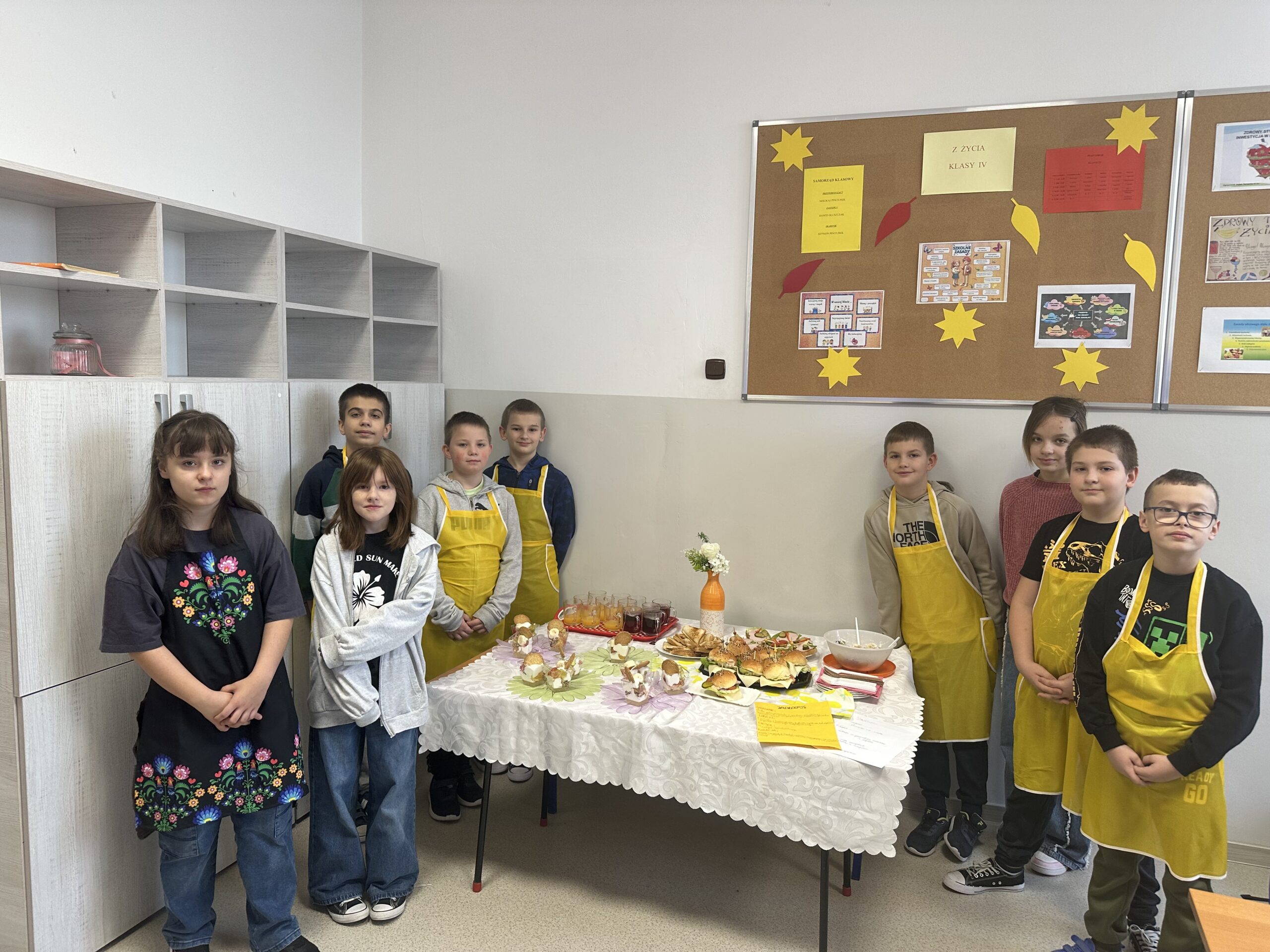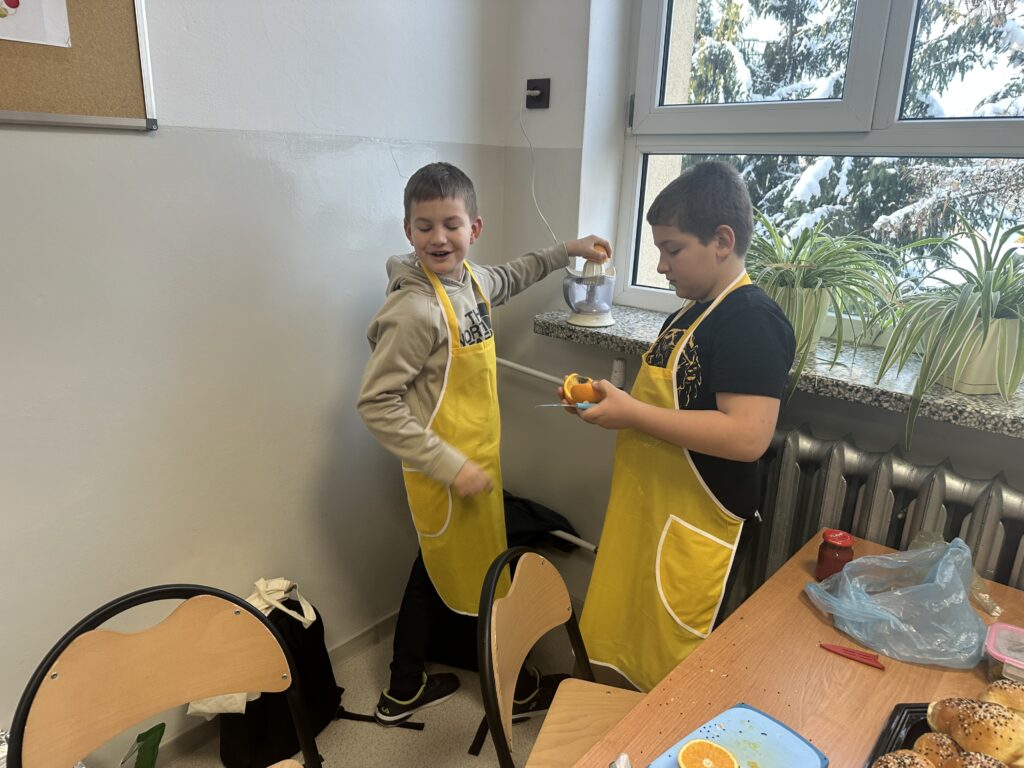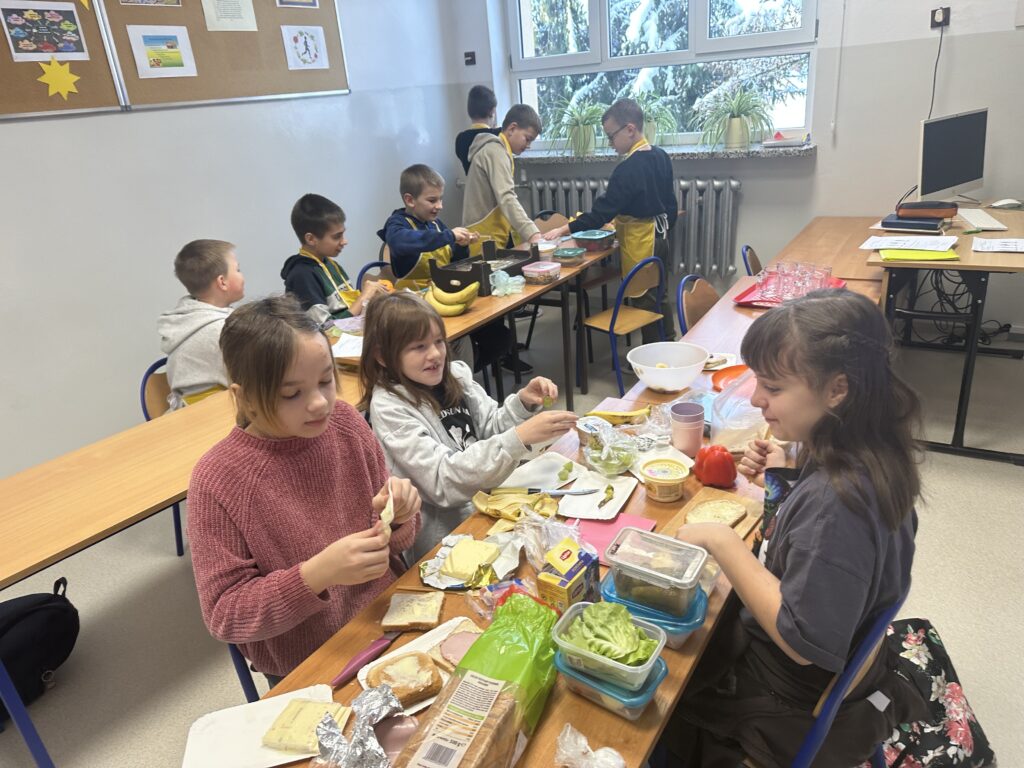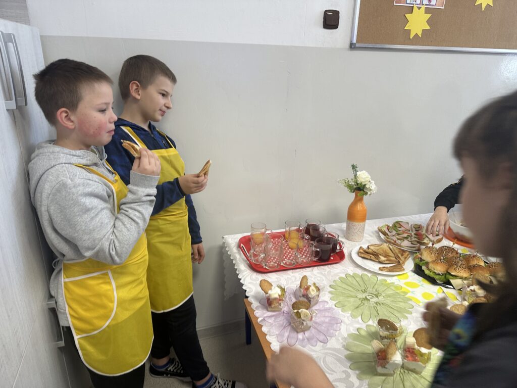 Czy zdrowe jedzenie może być smaczne i apetyczne? Na takie pytanie próbowali odpowiedzieć uczniowie klasy czwartej realizując swój pierwszy samodzielny projekt z przyrody. Celem projektu było opracowanie jadłospisu i wykonanie pełnowartościowego, zdrowego posiłku: śniadania, lunchu- deseru, przekąsek oraz kolacji. Uczniowie zostali podzieleni na trzy grupy, każdej grupie przydzielone zostały zadania. Czwartoklasiści perfekcyjne przygotowali się do wykonania zadań, opracowali jadłospisy, przynieśli do szkoły niezbędne produkty i sprzęt. Przygotowali pyszne i zdrowe dania, których zapach przyciągał pod salę numer 28 innych uczniów i nauczycieli. Potrawy zostały zaprezentowane i zjedzone. Poczęstowani zostali także inni uczniowie, nauczyciele i pan dyrektor. Projekt dał uczniom możliwość wykazania się w sposób twórczy pod względem myślenia i działania, dzięki czemu stali się bardziej samodzielni i kreatywni w zdobywaniu wiedzy, umiejętności oraz nawyków żywieniowych. Uwrażliwiał ich na kwestie odpowiedzialności za własne zdrowie.