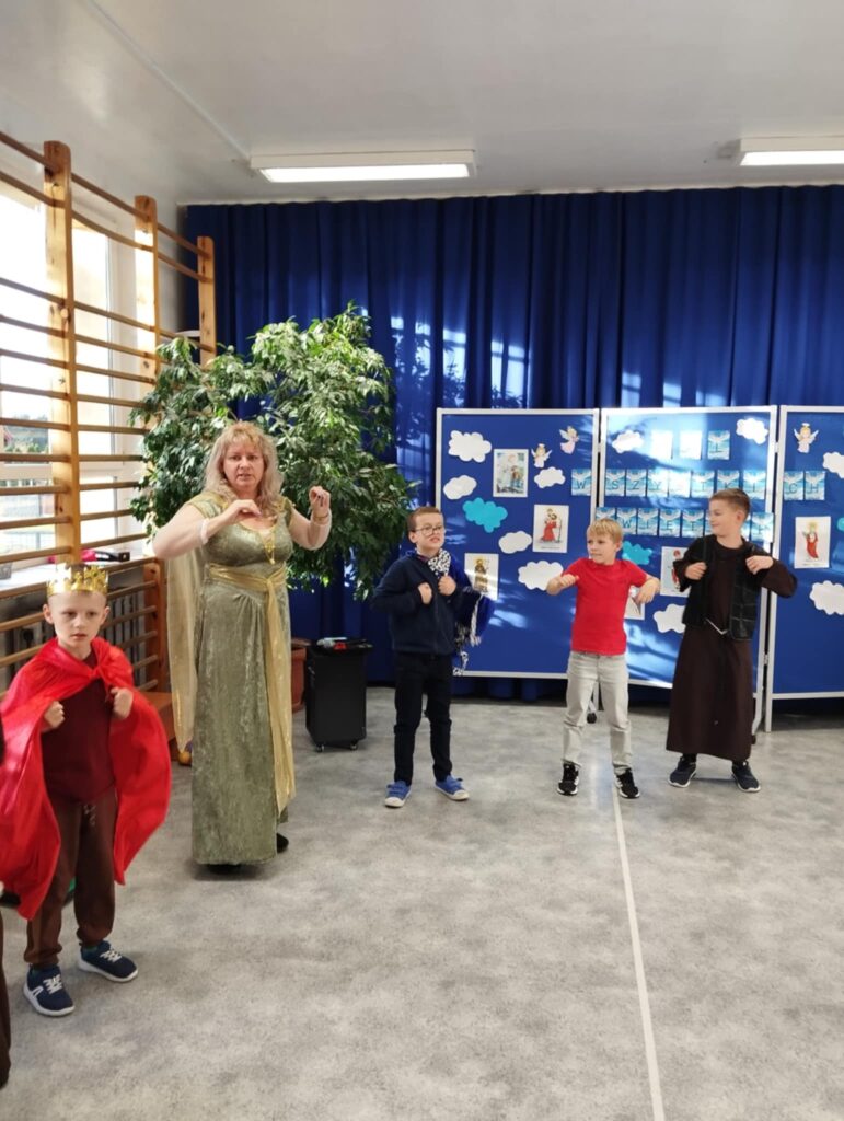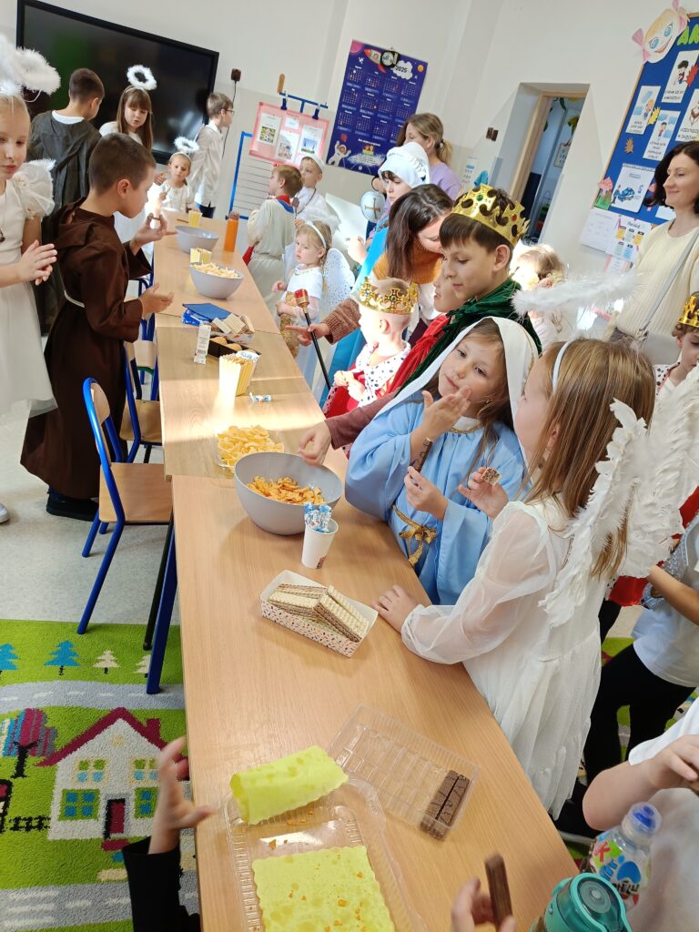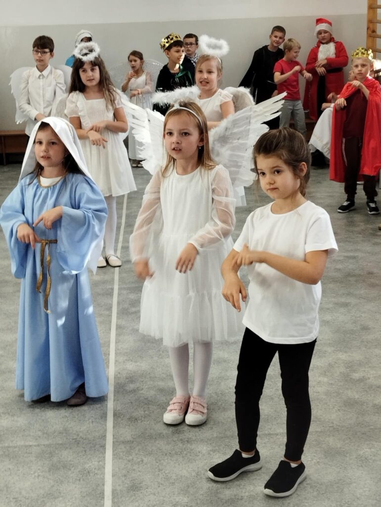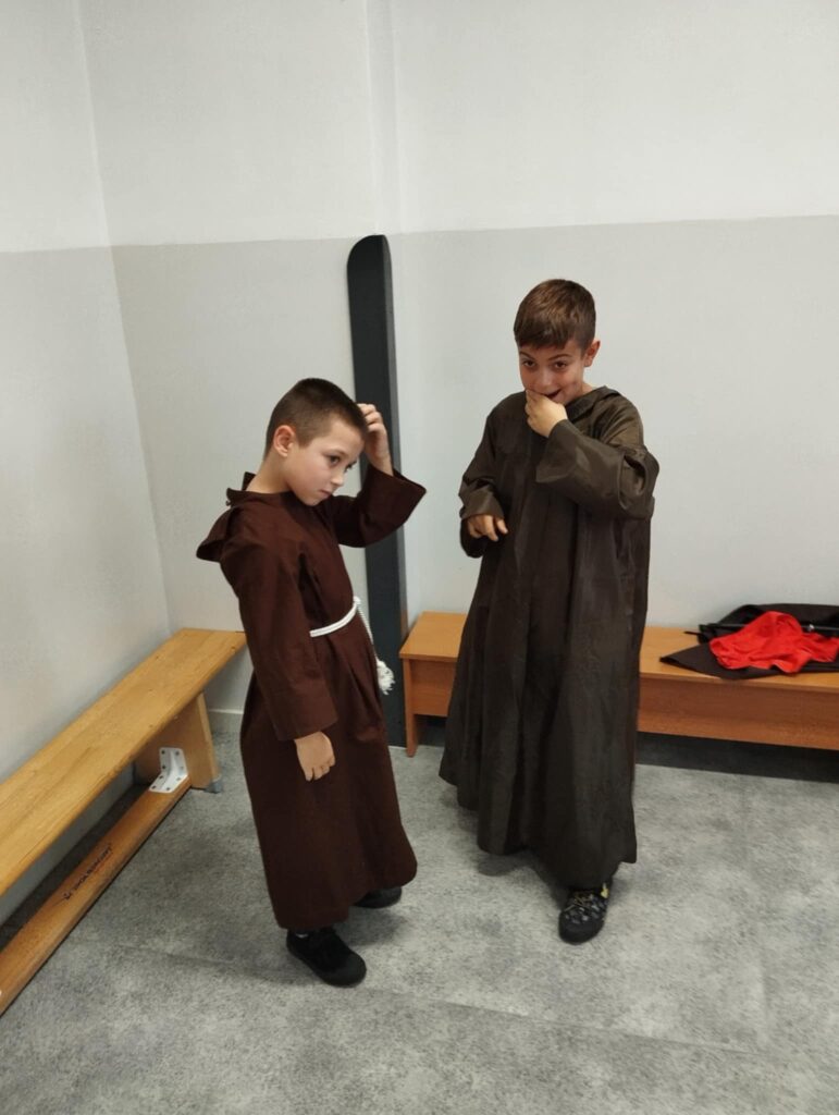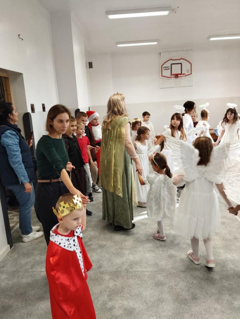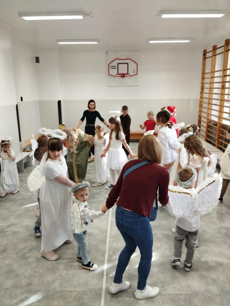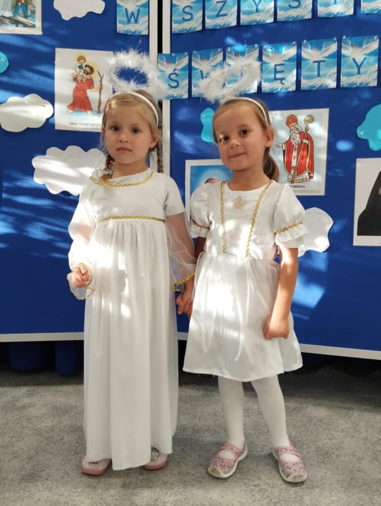 Dnia 30.X.2024r., z racji zbliżającej się Uroczystości Wszystkich Świętych, już po raz kolejny odbył się w naszej szkole Bal Wszystkich Świętych – „ Ze świętymi za pan brat”. Tego dnia było jak w niebie. Przedszkolaki oraz uczniowie klas 1-4 wykazali się dużą pomysłowością i zaprezentowali się w niezwykłych strojach. Na parkiecie można było dostrzec postaci aniołów, ulubionych świętych i błogosławionych Kościoła Katolickiego. Celem tej inicjatywy jest wprowadzanie w atmosferę radości, uświadomienie istoty listopadowego wspominania świętych . Zabawa polegała na wybraniu sobie postaci świętego lub błogosławionego, wymyśleniu stroju dla swojego patrona nie zapominając o jego atrybutach i zaprezentowaniu swojej wiedzy o świętym. Na balu nie mogło zabraknąć dobrej zabawy. Dzieci wesoło bawiły się przy dźwiękach muzyki, tańczyły, śpiewały, brały udział w wesołych rywalizacjach. Był to piękny czas – pełen radości, uśmiechu i wspólnej zabawy.