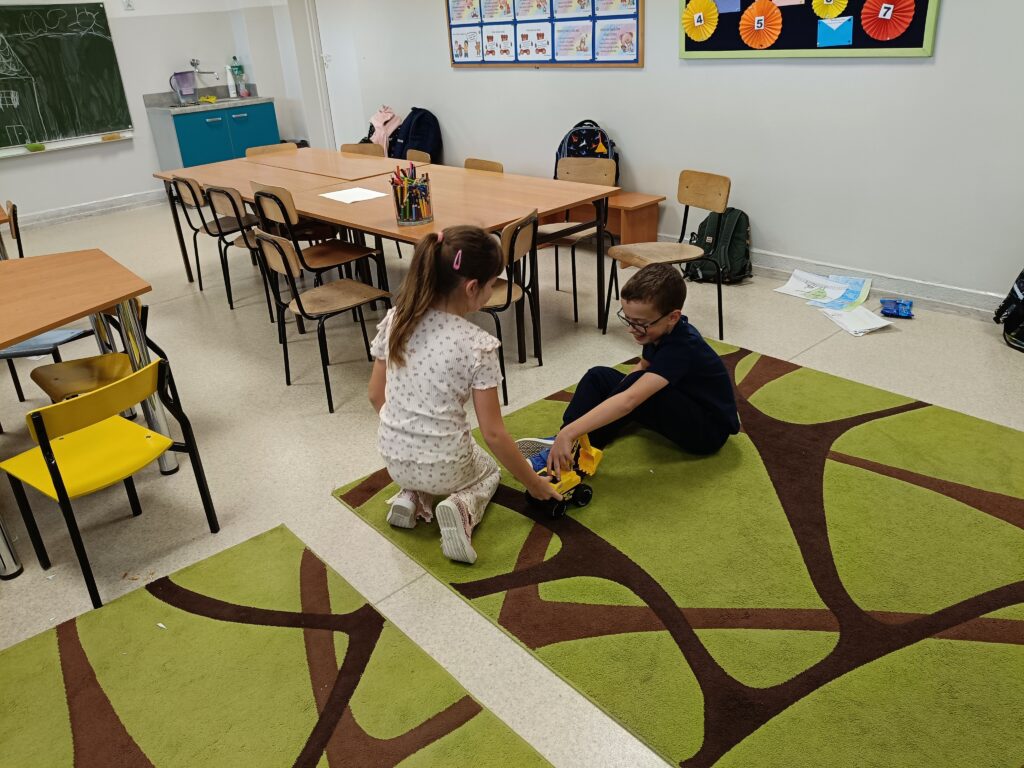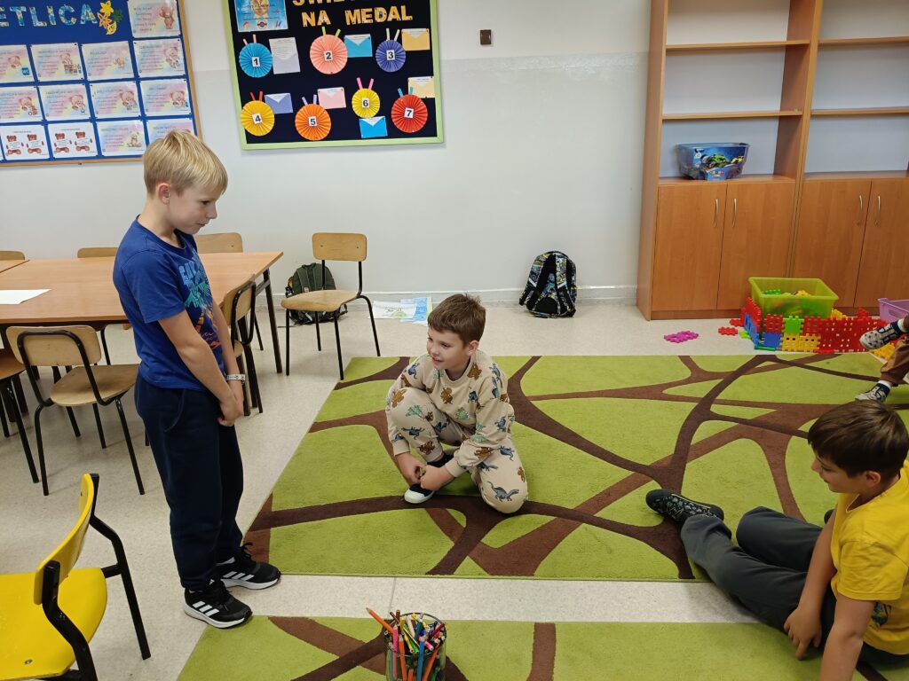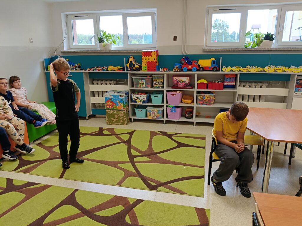 Pierwsze zadanie „„Mini teatrzyk- „Kulturalne scenki” – w małych grupkach dzieci odgrywał krótkie scenki np. w sklepie, w szkole, w domu itp., pokazując zachowanie pełne kultury i szacunku.