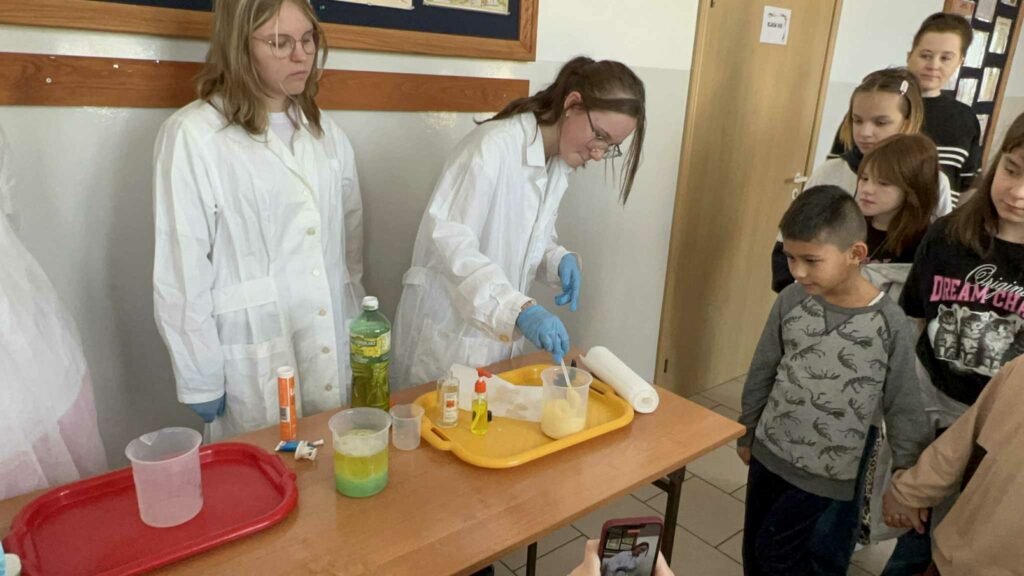 – Pokazy chemiczne – Hanna, Aleksandra i Oliwia z klasy 8,