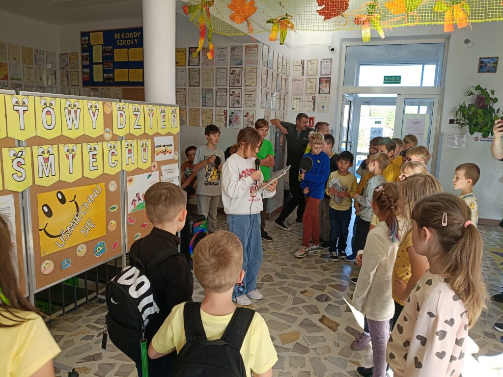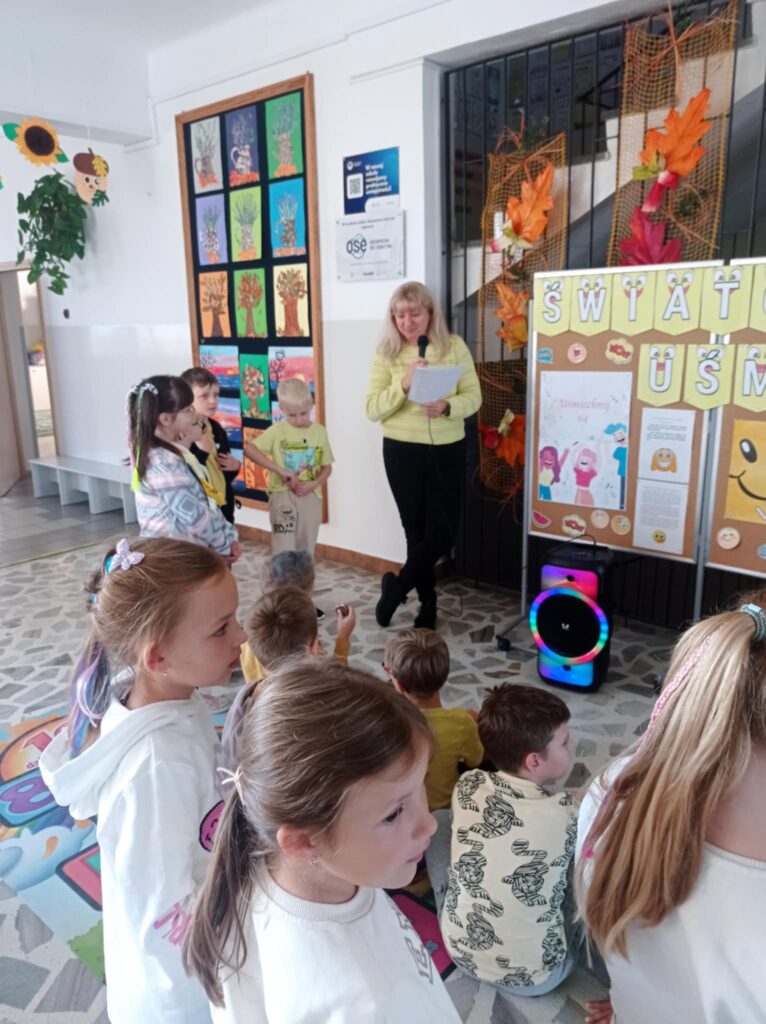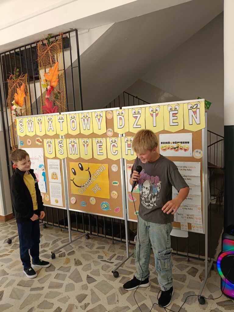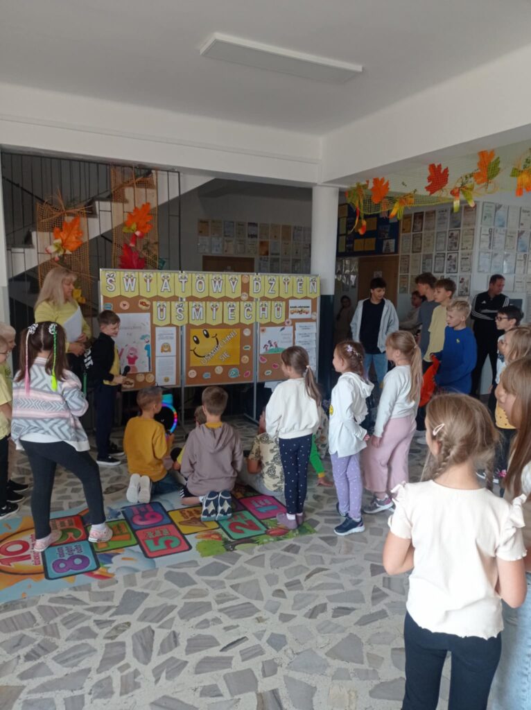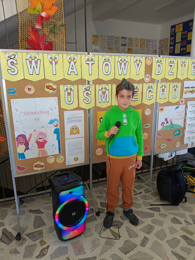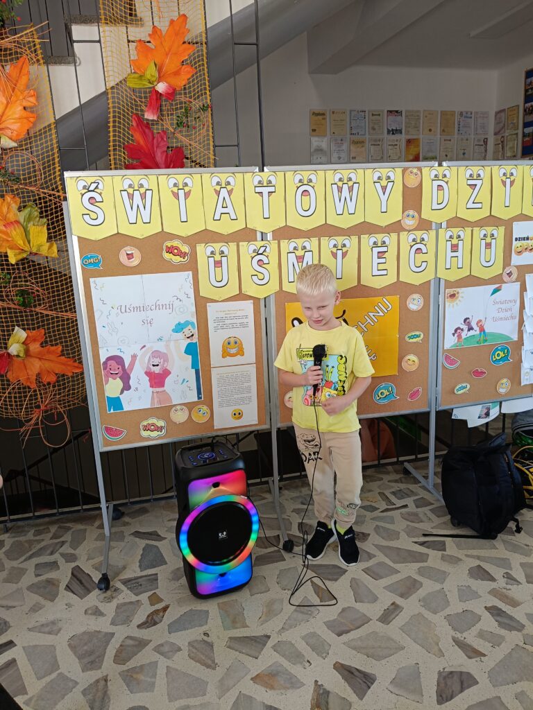 Zabawy w tym dniu miały każdego ucznia i przedszkolaka naszej szkoły wprawić w dobry nastrój i wywołać dużo uśmiechu na twarzy. Doskonaliliśmy umiejętność rozpoznawania i nazywania uczuć. Dzieci na świetlicy wysłuchały bajki terapeutycznej „Śmiecholandia” a następnie rozmawialiśmy o emocjach. Wykonaliśmy wesołe prace plastyczne oraz uczestniczyliśmy w zabawach ruchowych. Członkowie Szkolnego Koła Wolontariatu „Złote serca” z grupy młodszej przygotowali dowcipy i zagadki, którymi dzielili się z innymi uczniami podczas przerw międzylekcyjnych. Tego dnia w szkole widać było na twarzach dzieci słodkie uśmiechy.