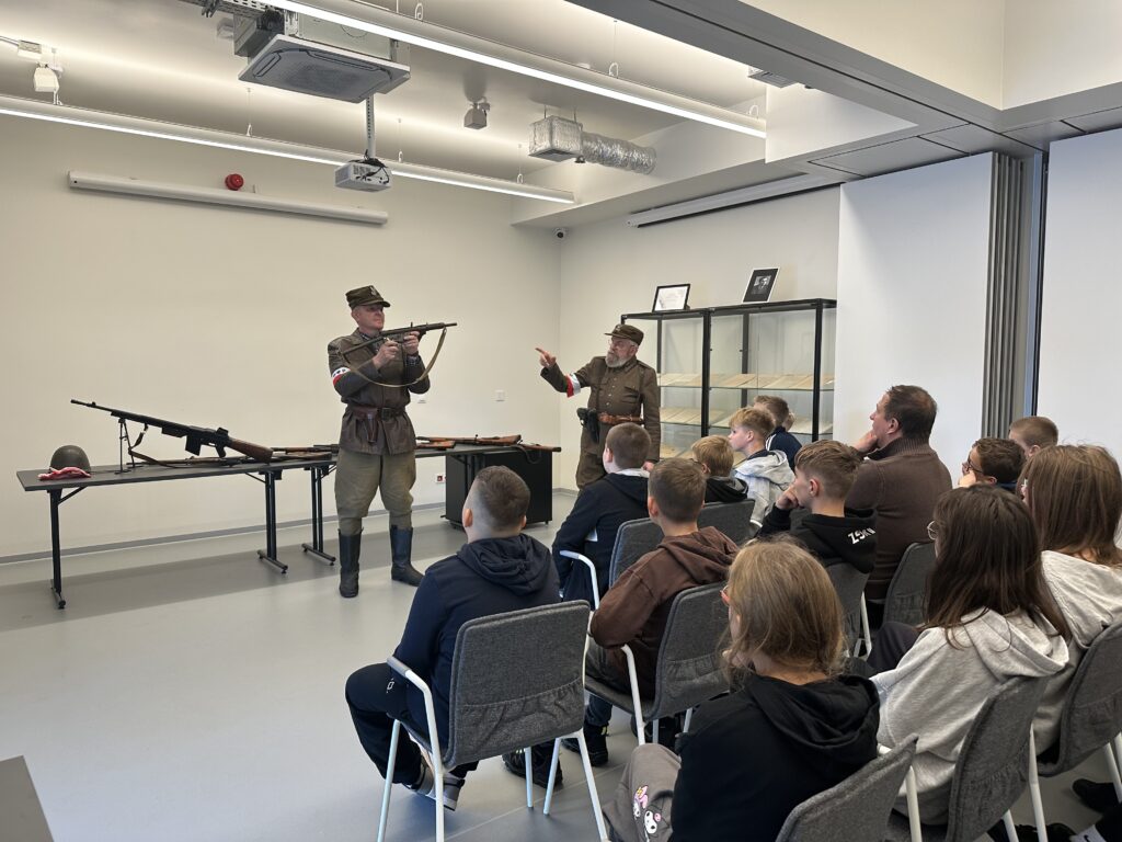 Pracownicy Muzeum Partyzantów Polskich Osuchy ’44, pani Dorota Skakuj i pan Tomasz Bordzań przybliżyli uczniom historię walk partyzanckich w Puszczy Solskiej. Uczniowie mogli zobaczyć m.in.