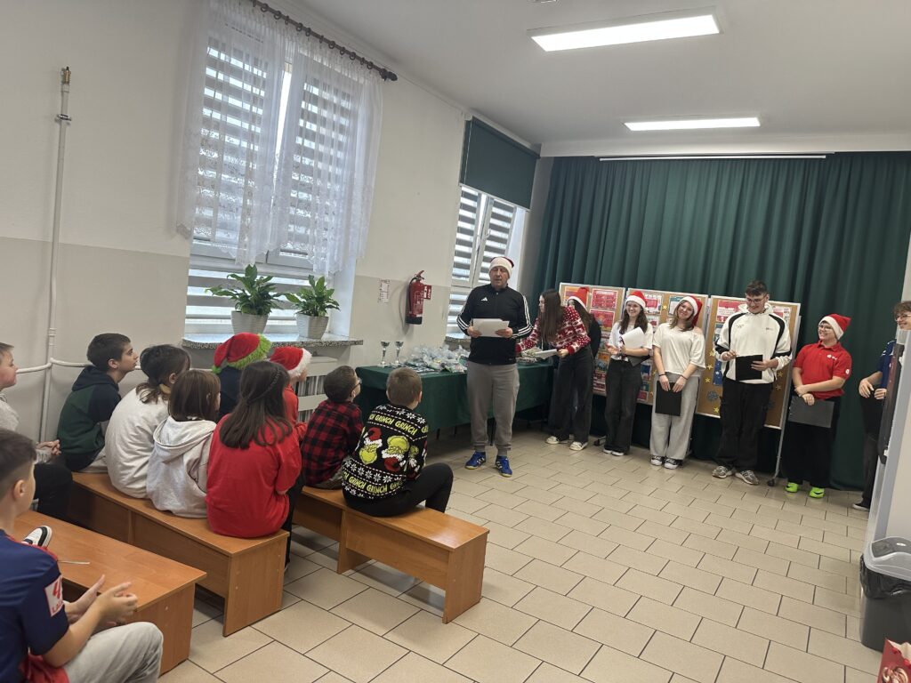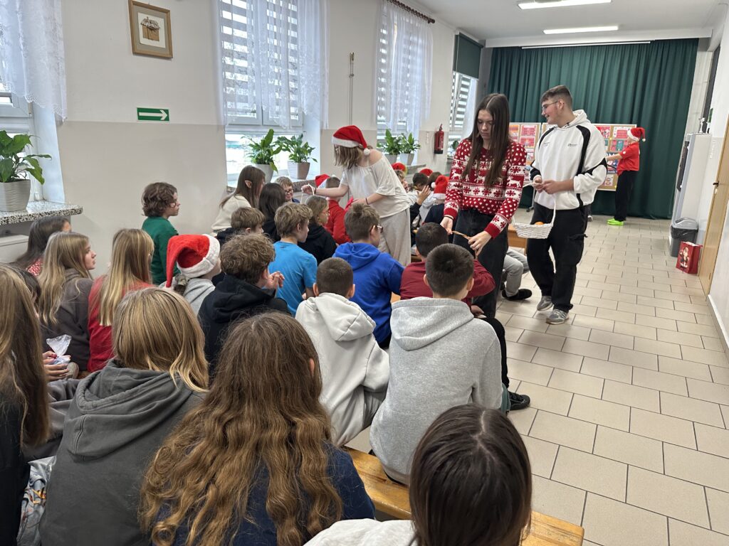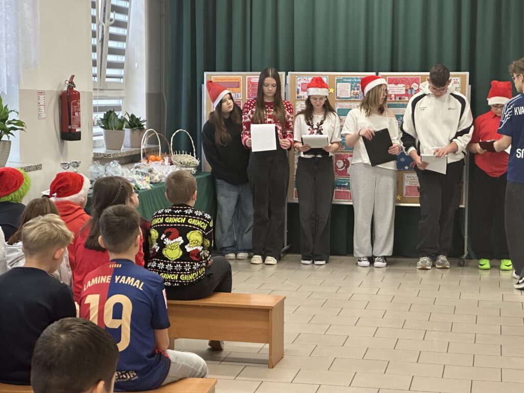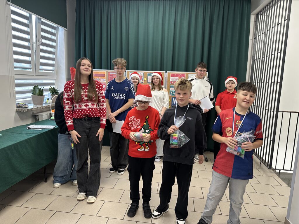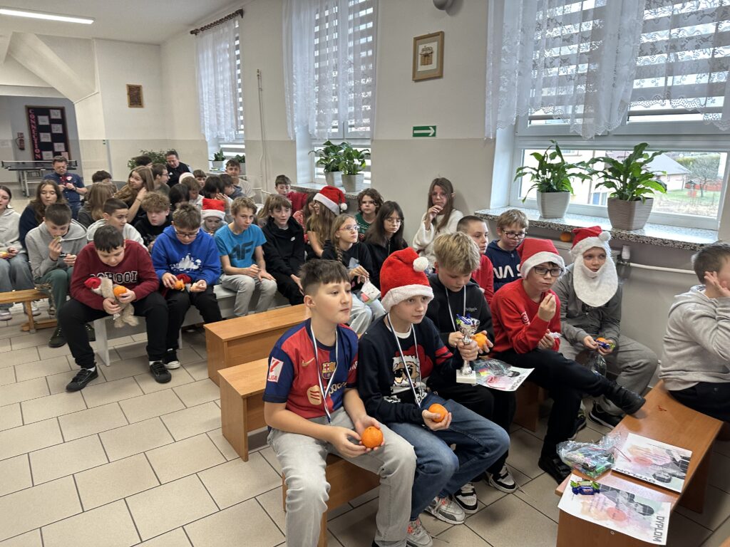 5 grudnia świętowaliśmy także Mikołajki z tej okazji Panu dyrektorowi, nauczycielom, koleżankom i kolegom  Rada Samorządu Uczniowskiego  i SKW „Złote Serca” złożyły życzenia  cudownych prezentów od świętego Mikołaja, wszyscy zostali obdarowali  słodyczami i piernikami.