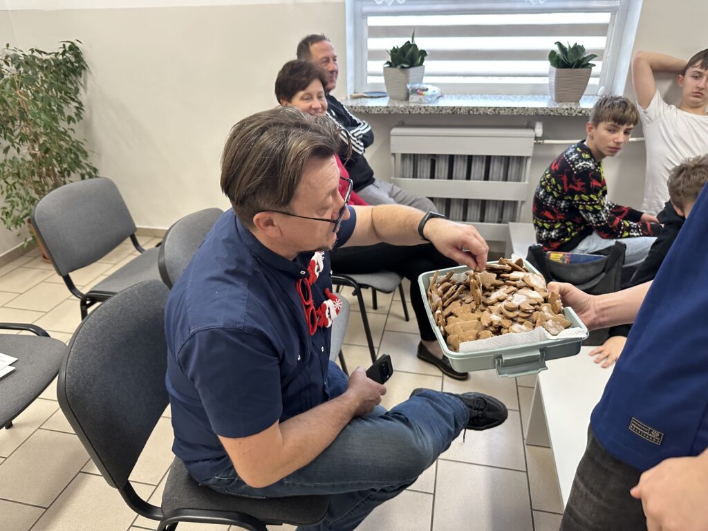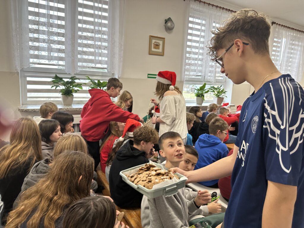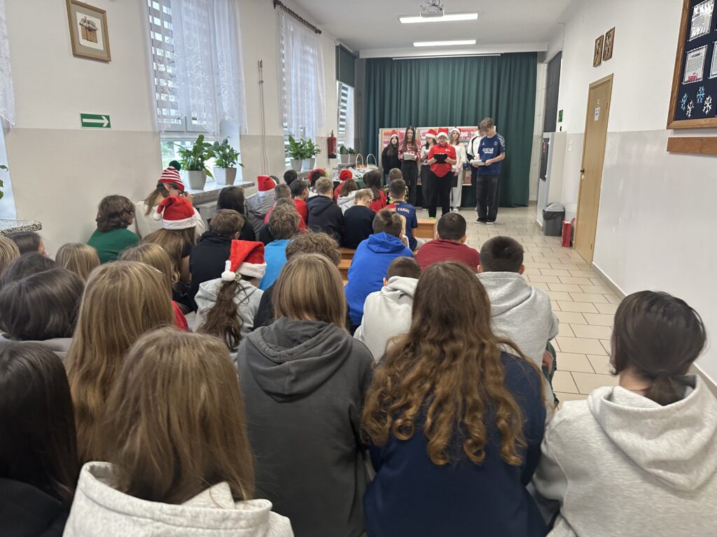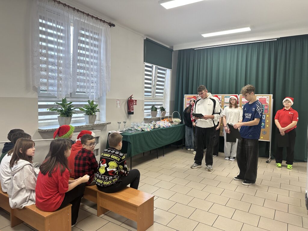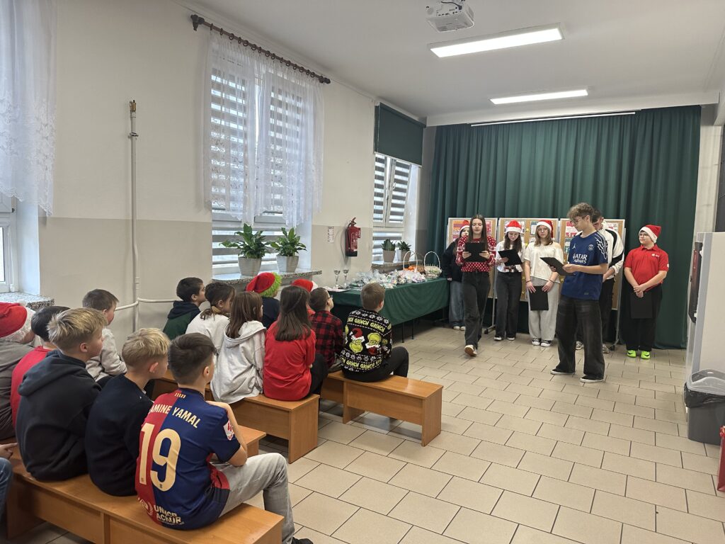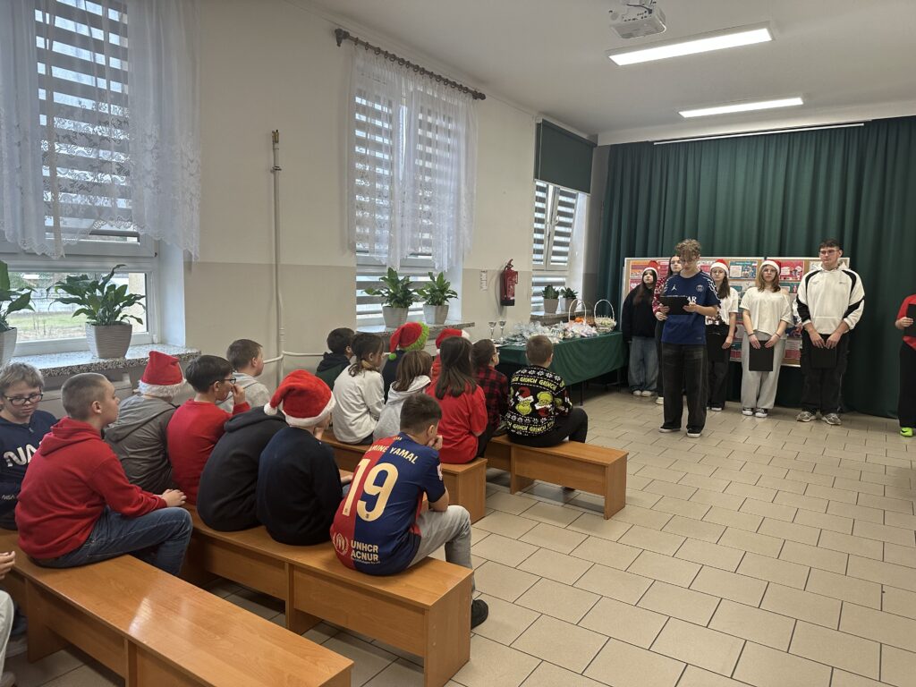 5 grudnia świętowaliśmy także Mikołajki z tej okazji Panu dyrektorowi, nauczycielom, koleżankom i kolegom  Rada Samorządu Uczniowskiego  i SKW „Złote Serca” złożyły życzenia  cudownych prezentów od świętego Mikołaja, wszyscy zostali obdarowali  słodyczami i piernikami.