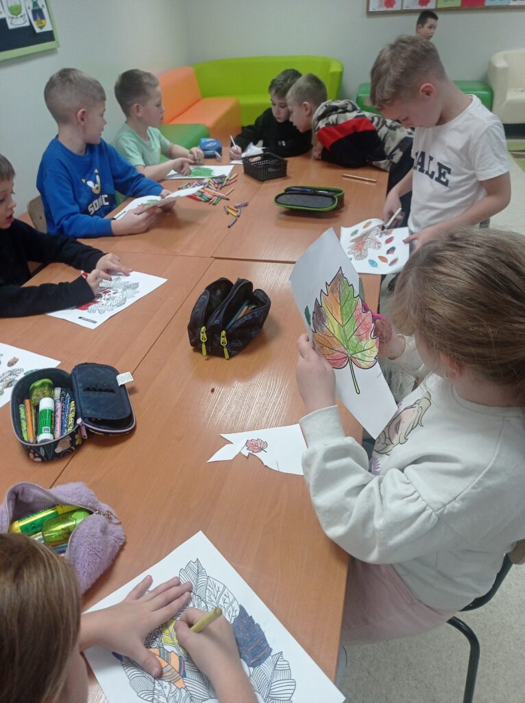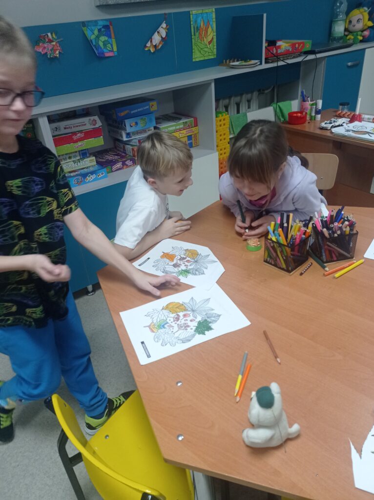 Pojawiły się także zagadki o jesieni, które wzbudziły duże zainteresowanie dzieci. Odbyła się również rozmowa na temat zmian w przyrodzie, jakie zachodzą jesienią, takich jak zmiana koloru liści, spadek temperatury czy przygotowania zwierząt i roślin do zimy.