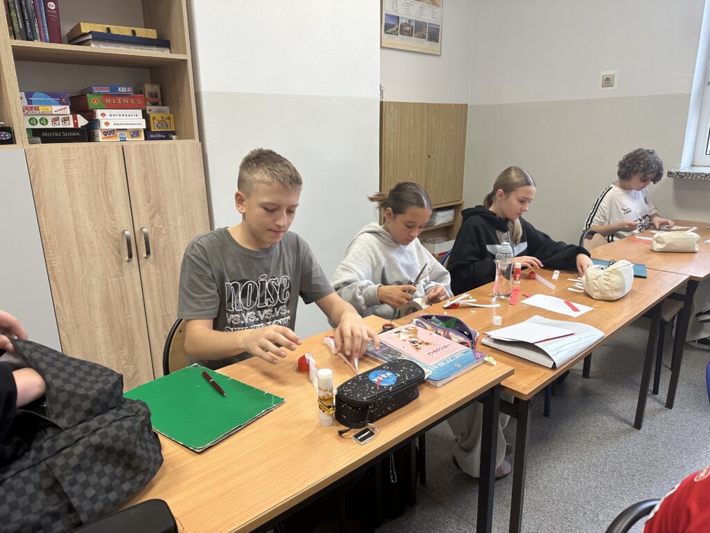 Ważnym elementem akcji była również część praktyczna – uczniowie klasy 6 na zajęciach techniki wykonali symbol pamięci, biało-czerwone serca z wstążek, którymi ozdobili znicze.