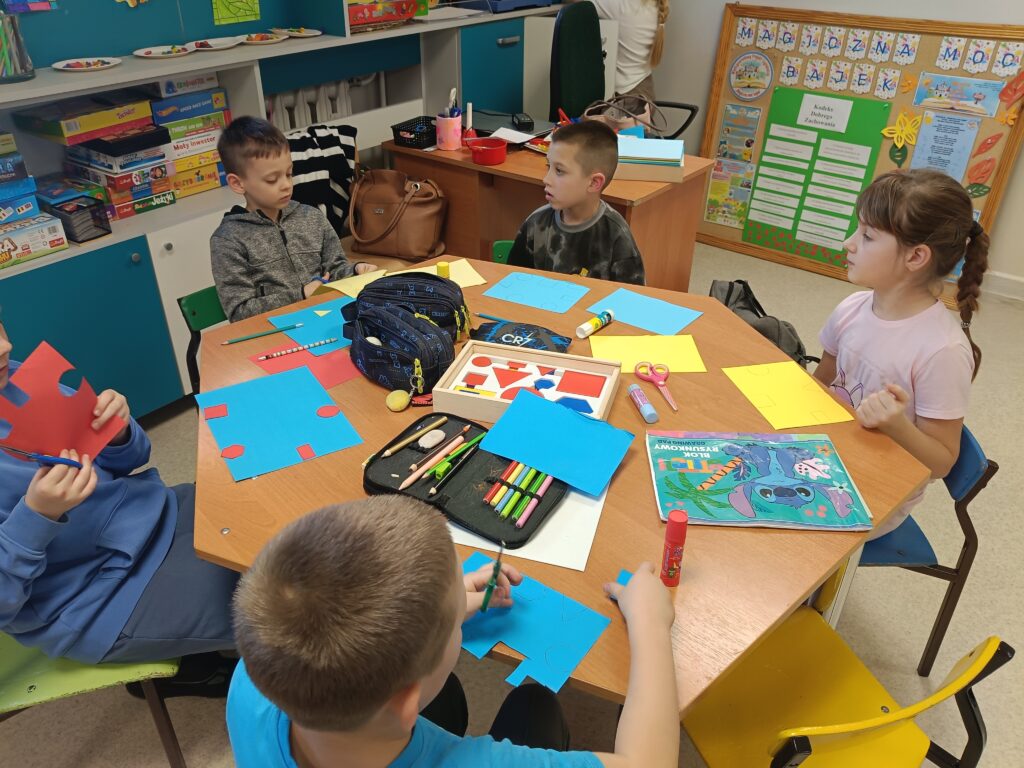 Uczniowie z klas 1-4 uczęszczający na zajęcia dodatkowe „Zabawy z matematyką” zrealizowały kolejne zadanie z Ogólnopolskiego Projektu Edukacyjnego „Kreatywna Matematyka”. W listopadzie zajmowaliśmy się kształtami w module „ Zabawy z kształtem”. Dzieci przypomniały sobie poznane kształty geometryczne, poznały zasadę tworzenia … Czytaj dalej »