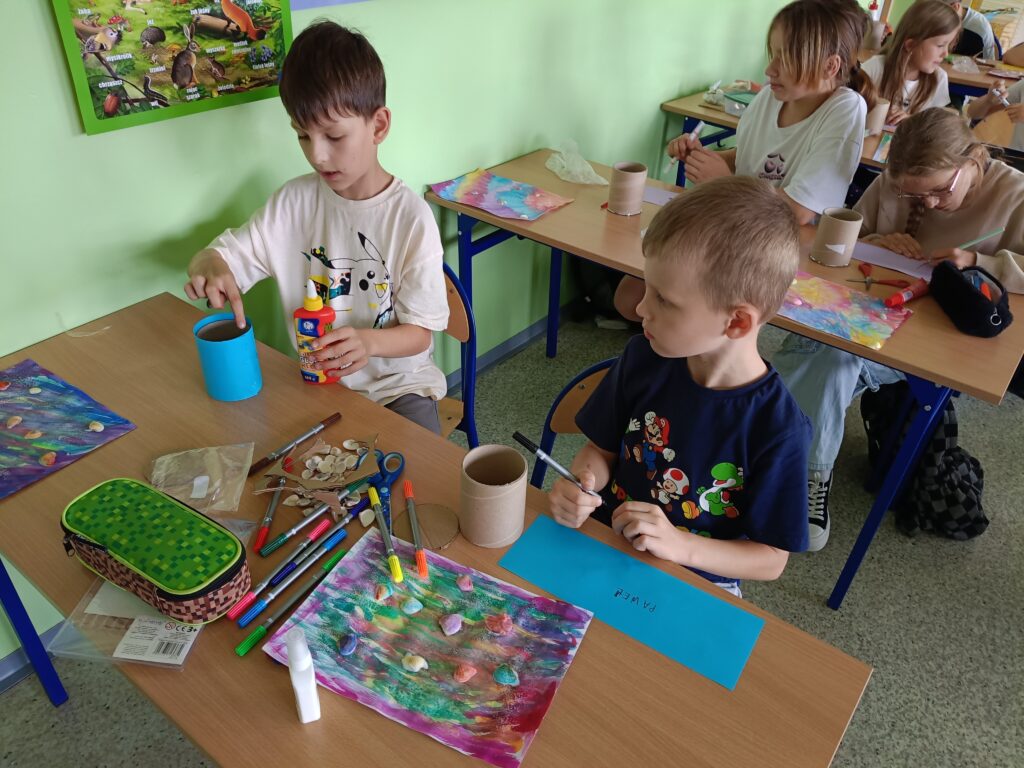 Uczniowie po wysłuchaniu fragmentów tekstu o zwierzętach i ptakach leśnych z książki „Co mówią zwierzęta?” wykonali kolejne zadanie projektowe „Jesienny las”. Rozmawialiśmy o tym jakie kolory dominują w jesiennym lesie i dlaczego. Następnie uczniowie wykonali wycinankę pt. „Jesienny las” z … Czytaj dalej »